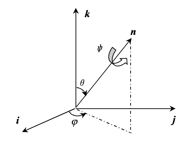 其中θ∈[0,π],φ∈[0,2π],ψ∈[0,π] 被称为方位角。这样一个旋转的矩阵形式为